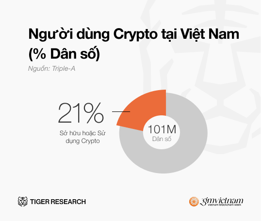 Theo báo cáo, tính đến năm 2024, Việt Nam đã có hơn 21,2 triệu người trưởng thành từng sở hữu hoặc sử dụng crypto, với khối lượng giao dịch hằng năm vượt mốc 100 tỷ USD.