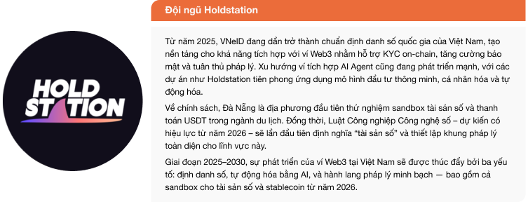 Trong khi lĩnh vực ví cũng ghi dấu với các tên tuổi Việt như Coin98 Wallet, SubWallet, Holdstation, thể hiện khả năng nắm bắt xu hướng và mở rộng người dùng vượt trội.